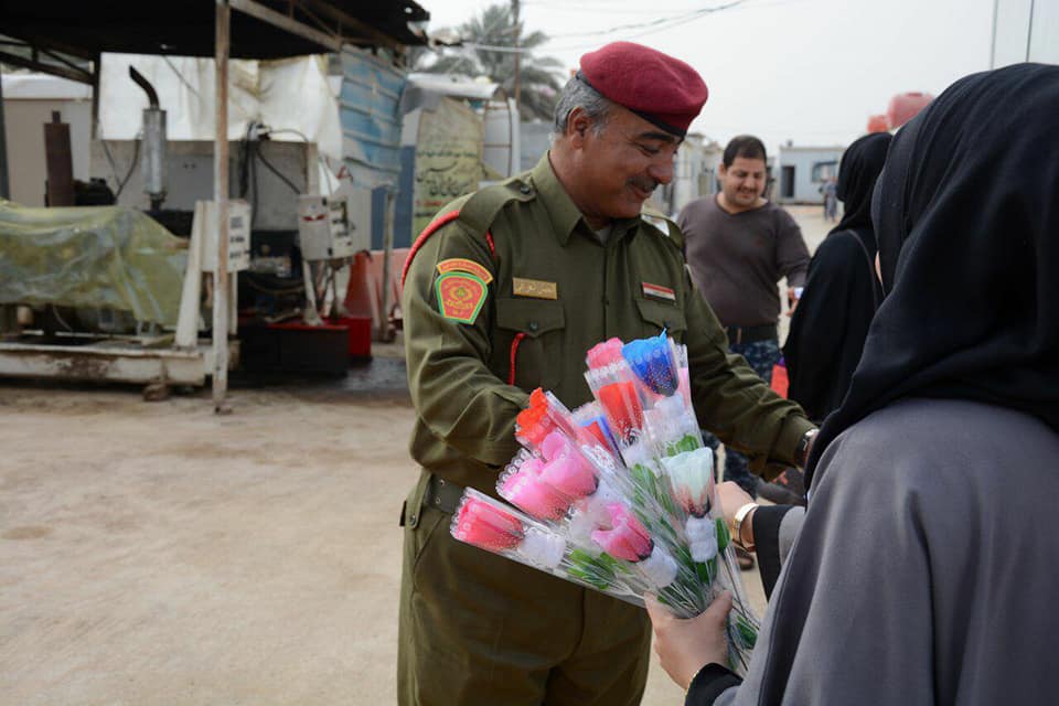 فريق الخوذة البيضاء الطلابي ...يشاركون الجيش العراقي فرحتهم ويوزعون الورود والاعلام العراقية .
