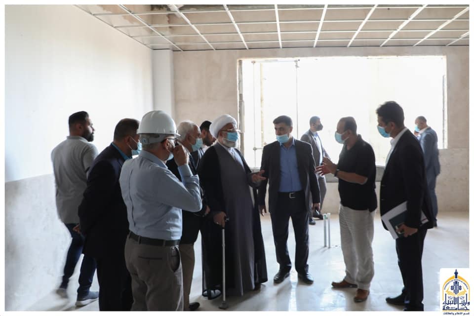 وبعض السادة العمداء والتدريسيين ، حيث تفقد سماحته الاعمال العمرانية والتوسعة الجديدة في الجامعة وأكد على ضروره الاهتمام بالجانب العلمي والرصانة العلمية اضافة الى الاهتمام بالجانب العمراني ، وأن بناء الإنسان المتعلم الواعي هو الأساس المطلوب الذي من اجله تبنت العتبة المقدسة مشروع الجامعات .