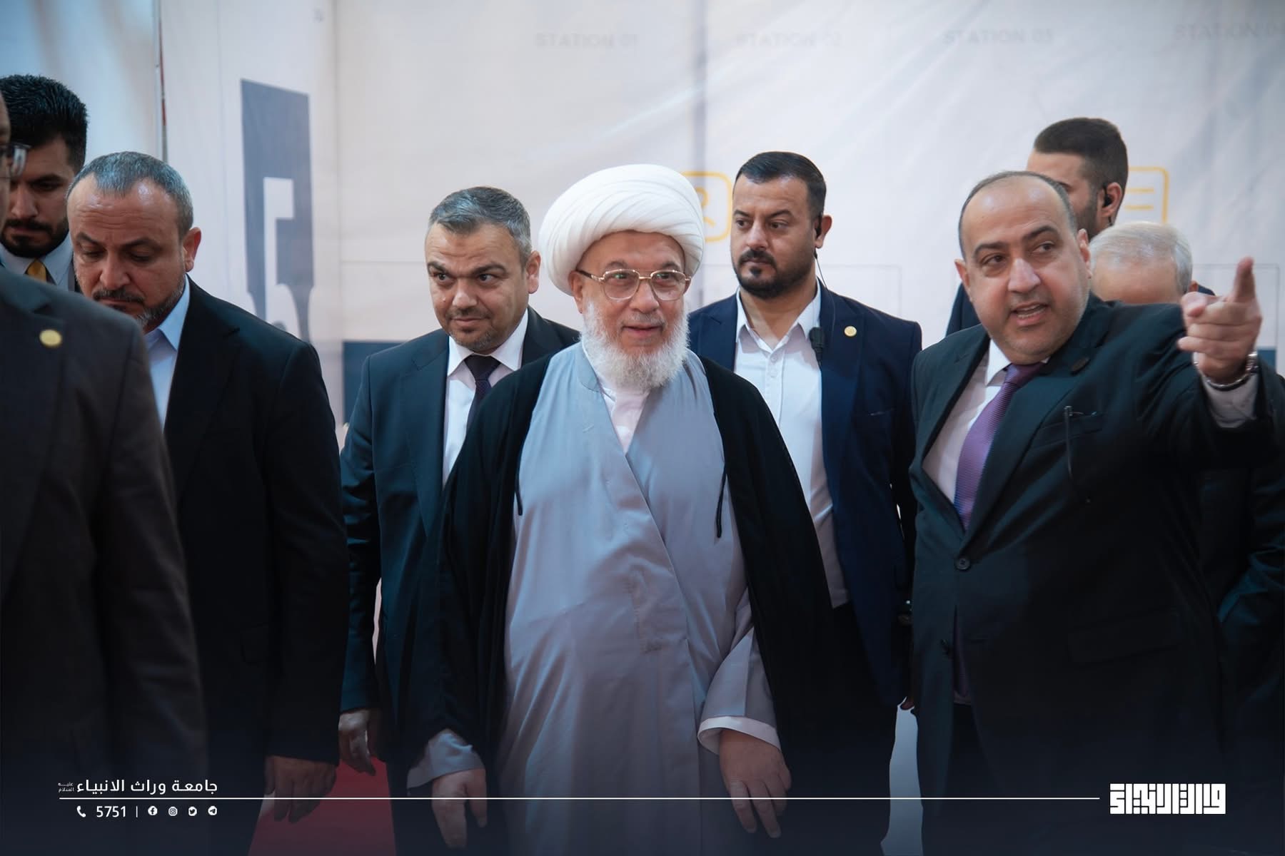 ممثلُ المرجعيةِ الدينيةِ العليا، سماحة الشيخ عبد المهدي الكربلائي (دام عزّه)، يزورُ خيمةَ التسجيل في جامعةِ وارث الأنبياء (ع) ويلتقي بعوائلِ الطلبة.