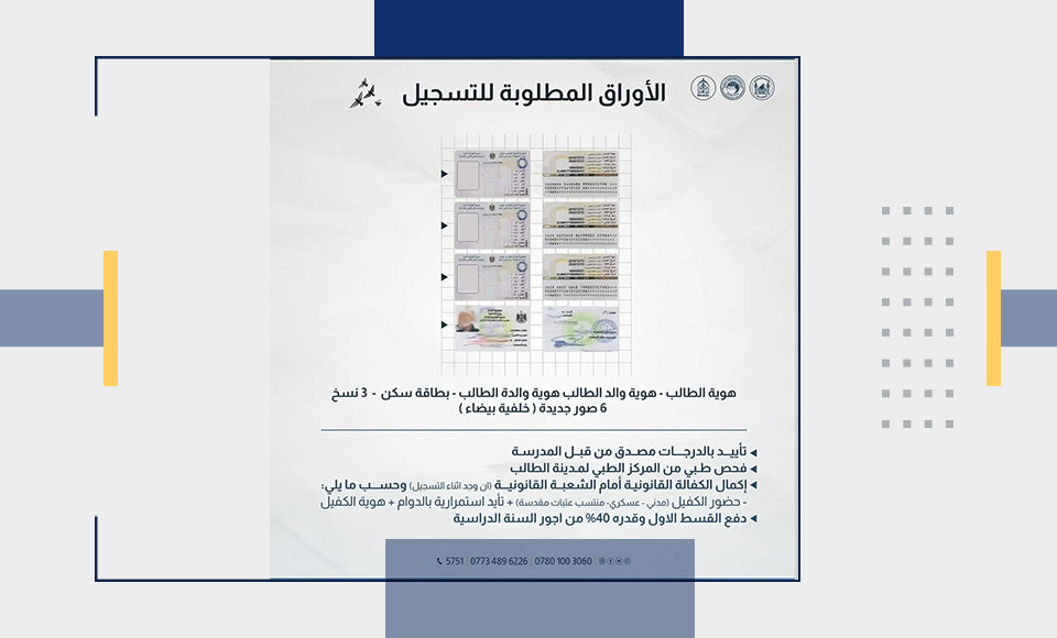 تعلن جامعة وارث الأنبياء (عليه السلام) عن إجراء مزايدة علنية لإيجار ساحة وقوف المركبات داخل الحرم الجامعي، وذلك يوم الأحد الموافق 7/12/2025 في تمام الساعة 10:00 صباحاً.