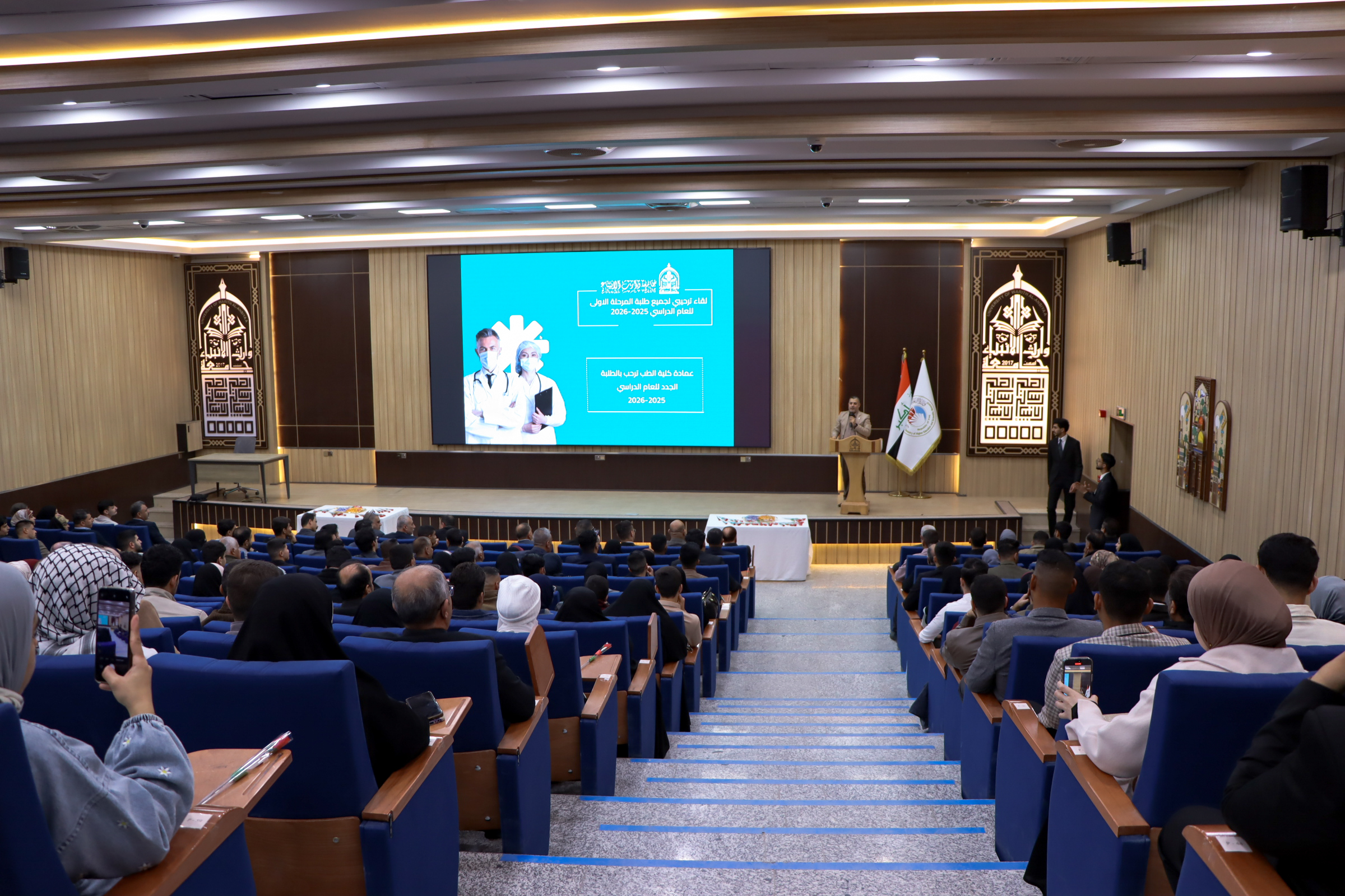 رحّبت كلية الطب في جامعة وارث الأنبياء (ع) بطلبتها الجدد من المرحلة الأولى للعام الدراسي 2025–2026، متمنيةً لهم مسيرة أكاديمية موفّقة حافلة بالجدّ والاجتهاد. كما رحّب الأستاذ الدكتور عميد كلية الطب، علي سعدون الغزي بالطلبة الجدد، مؤكداً حرص الكلية على توفير بيئة تعليمية متكاملة تسهم في إعداد أطباء أكفاء علمياً ومهنياً، وبما ينسجم مع أهداف التعليم الطبي ومتطلبات خدمة المجتمع.