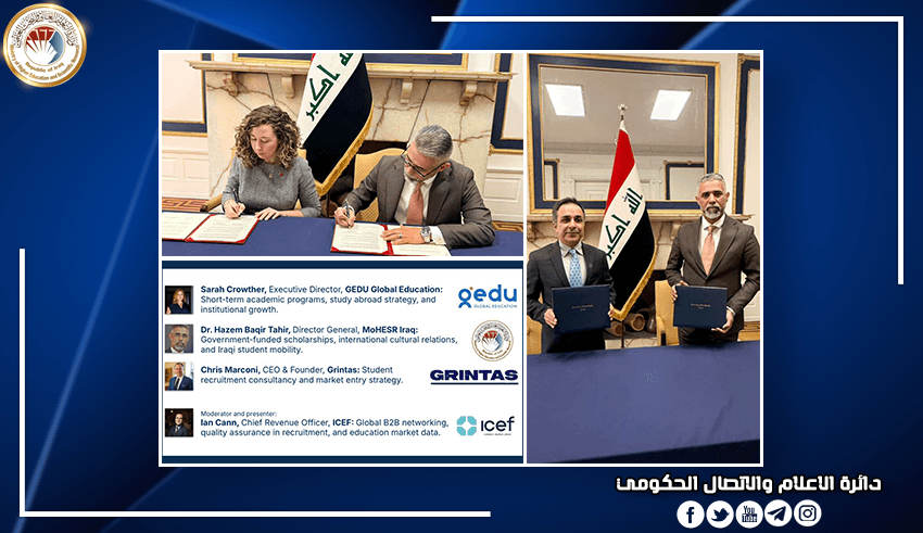 وجرى توقيع مذكرة التفاهم وخطاب النوايا في واشنطن على هامش المؤتمر السنوي لرابطة التعليم الدولي AIEA Annual Conference 2026 الذي شارك فيه العراق ممثلا بوزارة التعليم العالي والبحث العلمي إلى جانب ممثلي المؤسسات الأكاديمية العالمية.