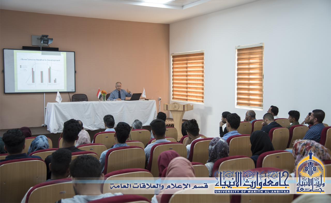 أقام مركز التعليم المستمر في جامعة وارث الانبياء بالتعاون مع كلية التمريض حلقة نقاشية عن هشاشة العظام وكيفية تشخيصها والوقاية منها حيث ذكر عميد كلية التمريض الدكتور خميس بندر أن هدف الحلقة النقاشية هو للتثقيف بهشاشة العظام واستهداف الطلبة بشكل رئيسي بأعتبارهم نواة المجتمع المثقف لينقلوا بدورهم الوعي لجميع شرائح المجتمع ,ومن جانبه ذكر التدريسي في كلية طب الاسنان في جامعة كربلاء الدكتور أكرم يوسف قد يكون السبب الرئيسي لمرض هشاشة العظام هو نقص فيتامين ( د ) والكالسيوم في الجسم مما يتسبب في ضعفها وزيادة فرصة تعرضها للكسور ، وذلك إمّا بسبب عدم التعرّض للشمس بشكلٍ كافٍ أو بسبب عدم تناول الأغذية الغنيّة بفيتامين ( د ) , لذلك فالحصول على الكمية المناسبة من الكالسيوم يومياً وممارسة الرياضة هو أمر أساسي للحفاظ على عظام قوية وصحية مدى الحياة , ويعد مرض هشاشة العظام أكثر أمراض العظام انتشاراً فى العالم وتكمن خطورته فى أنه ليس له أعراض واضحة ولهذا السبب يسمى بالمرض الصامت.