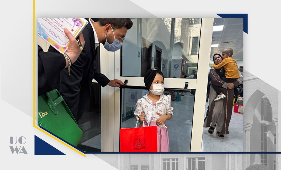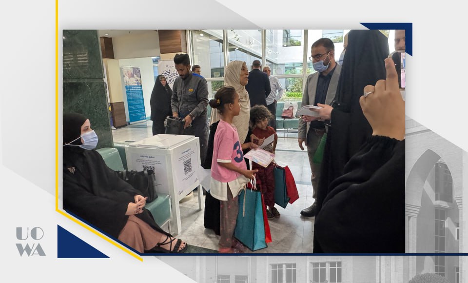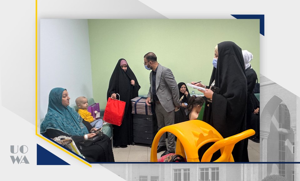 برعاية السيد رئيس الجامعة الاستاذ الدكتور إبراهيم سعيد الحياوي المحترم، وبموافقة السيد عميد كلية الإدارة والاقتصاد الاستاذ الدكتور عواد كاظم شعلان الخالدي المحترم وتنفيذًا لفقرات الخطة العلمية/ الزيارات العلمية للعام الدراسي 2025-2026 وبإشراف الاستاذ المساعد الدكتور حسين محمد علي كشكول وعدد من السادة التدريسيين المحترمين زار عدد من طلبة المرحلة الثانية في قسم إدارة الاعمال مؤسسة وارث الدولية، قسم الاطفال وذلك لتقديم الدعم النفسي والمعنوي للمرضى وقد تم استقبالهم من قبل المؤسسة كما قام الطلبة بتقديم الهدايا للأطفال لدعمهم.