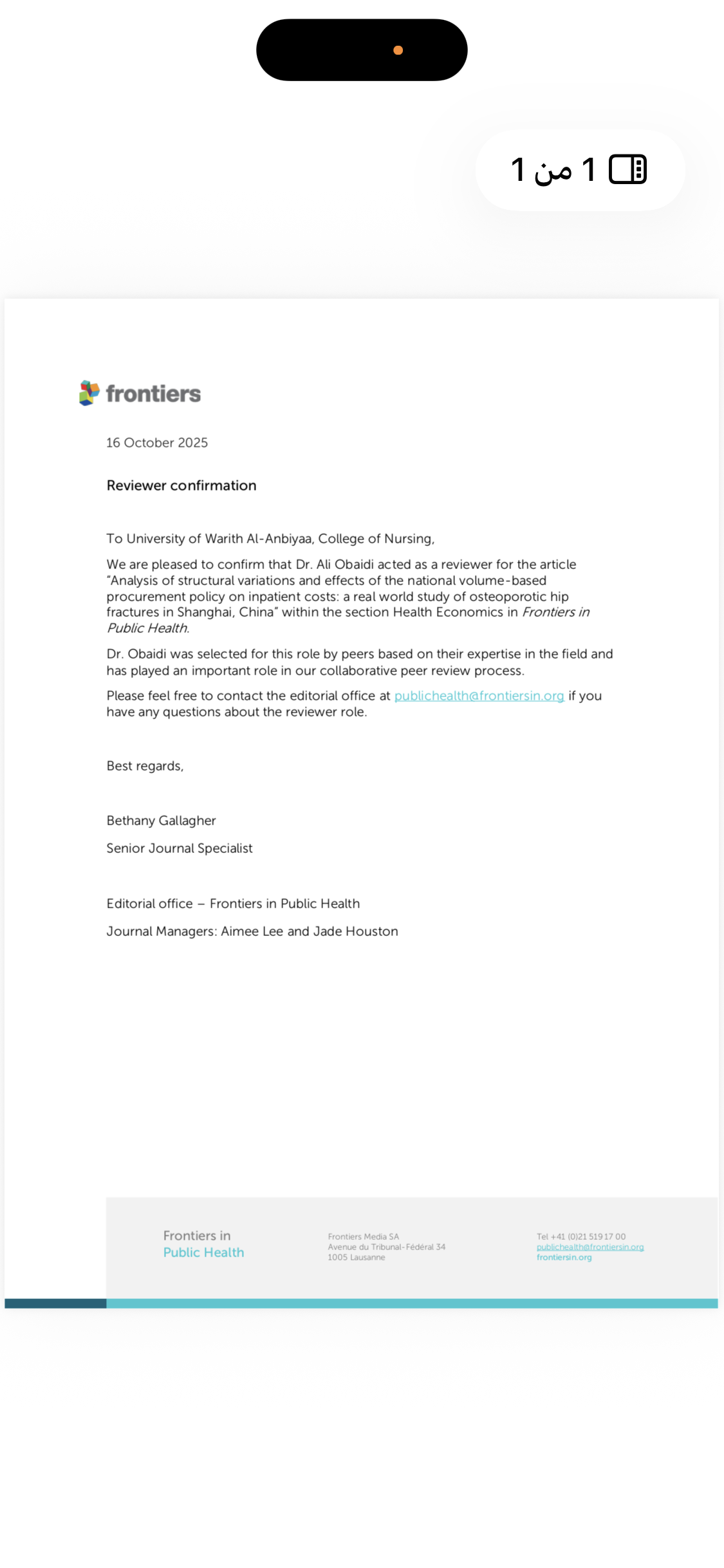 سيدي وحبيبي يا حسين، أهدي إليك هذا الوسام، فأنت من غرست فينا بذرة العطاء حبًا وإخلاصًا، وأنت من هديت نفوسنا إلى مراقي الكمال والتميز جهدًا واجتهادًا، وأنرت عقولنا لخدمة الدين والإنسان والوطن فكرًا واعتقادًا… لك دون سواك.