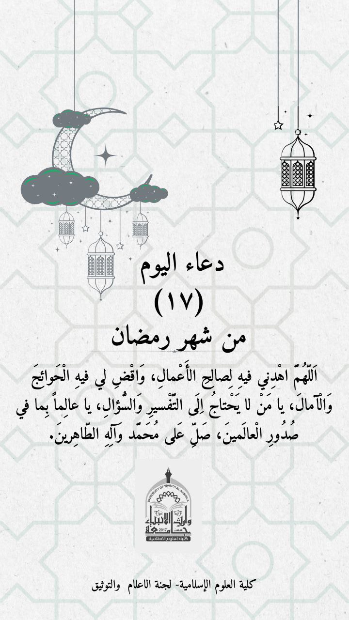 دعاء اليوم السابع عشر من شهر رمضان المبارك