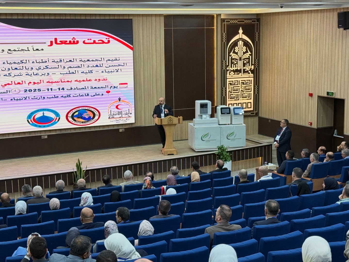تحت شعار “معاً لمجتمع واعٍ بصحة السكري” احتضنت كلية الطب في جامعة وارث الأنبياء (عليه السلام) اليوم الجمعة الموافق 14 تشرين الثاني 2025، الندوة العلمية المتخصصة التي أقامتها الجمعية العراقية لأطباء الكيمياء المرضية بالتعاون مع مركز الحسن للغدد الصم والسكري وبرعاية شركة الريادة العربية، وبمشاركة أساتذة وباحثين مختصين من مختلف المراكز العلمية داخل العراق وخارجه.