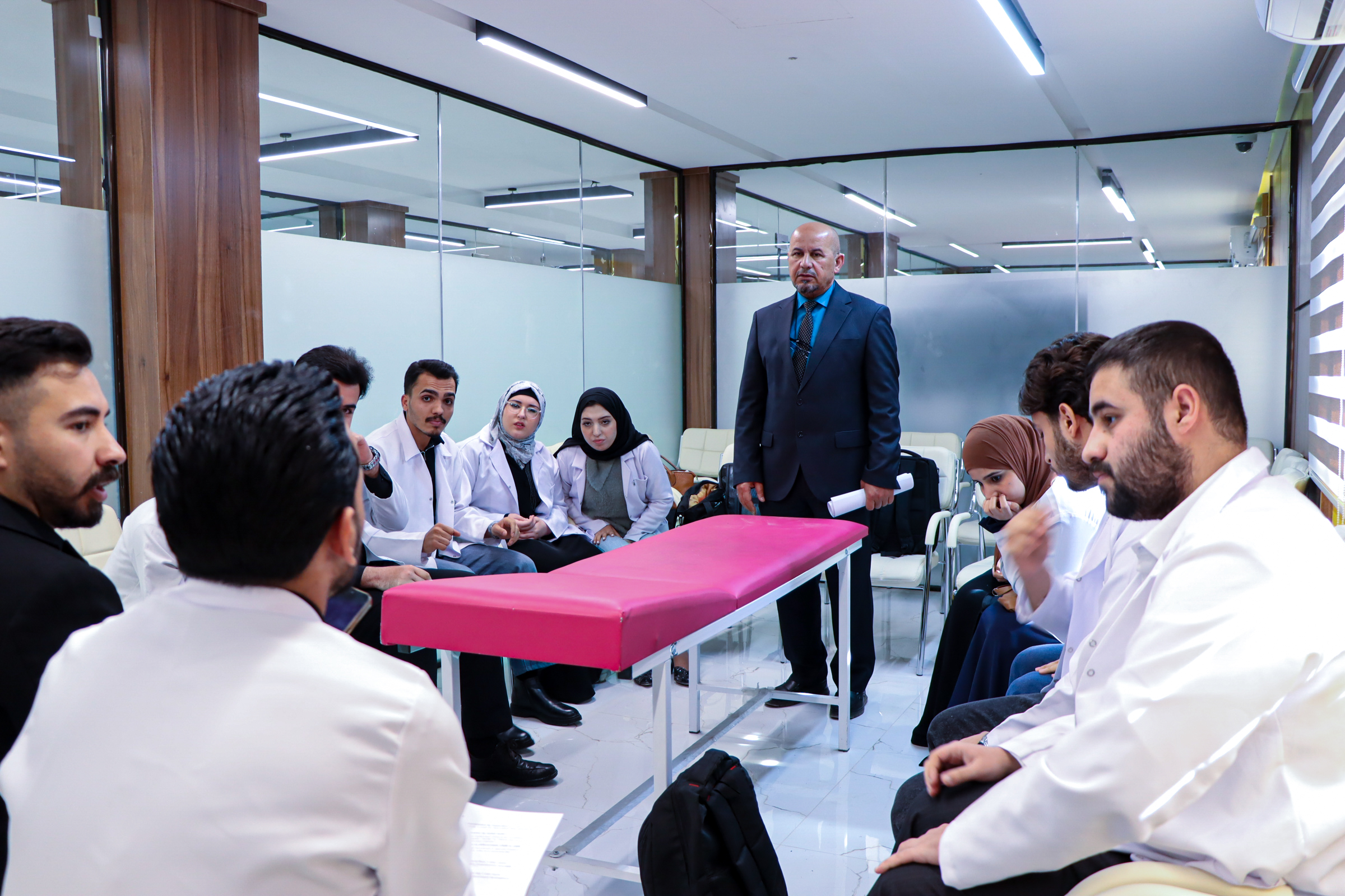 باشراف ومتابعة عمادة كلية الطب مدير التعليم الطبي الدكتور احمد عبد مسلم مع طلبة المرحلة الاولى في سفرة علمية الى مستشفى الامام الحجة عجّل الله فرجه