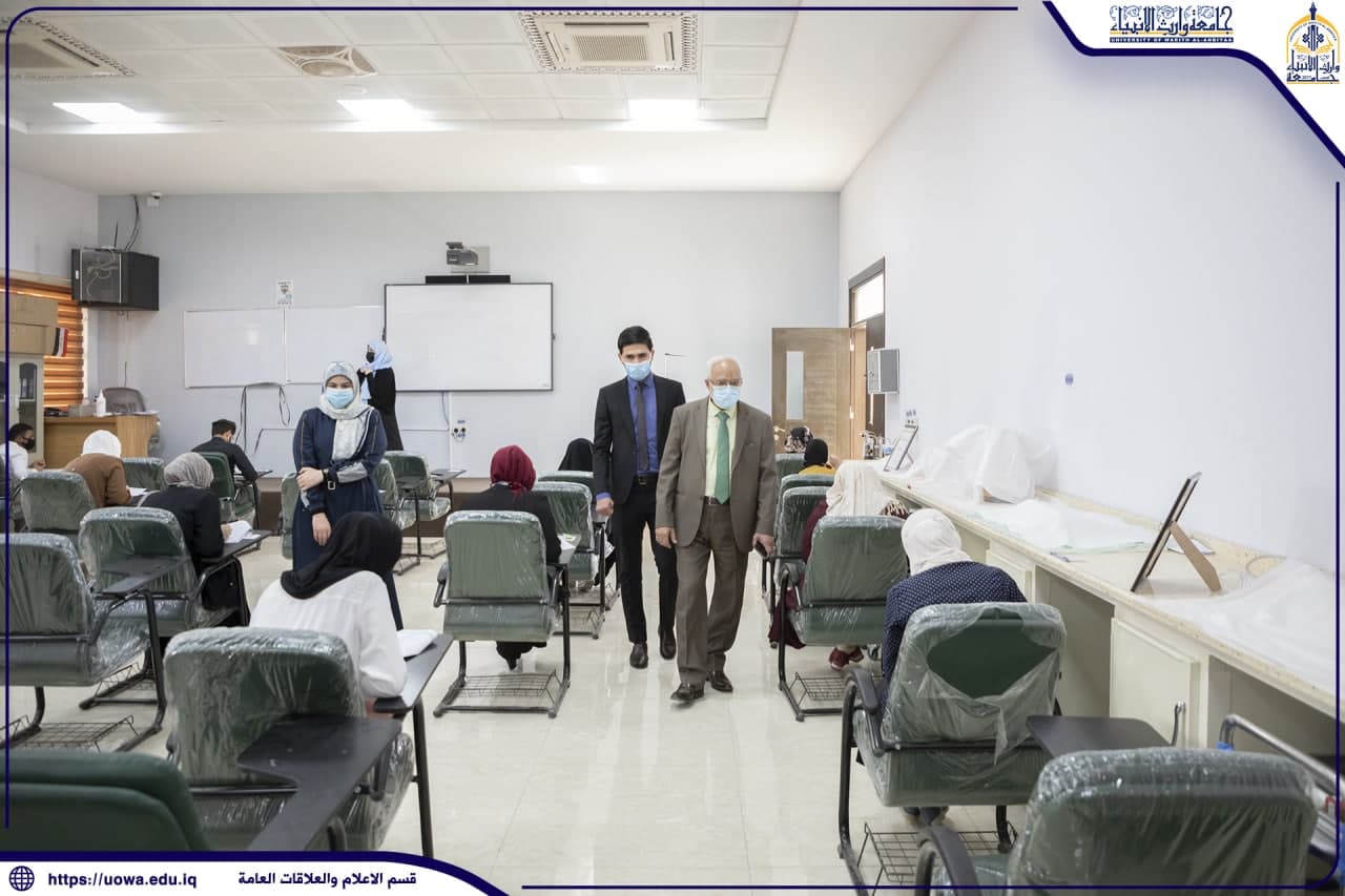 اجرى السيد رئيس الجامعة الاستاذ الدكتور طالب حسن موسى يرافقه السيد المساعد العلمي الاستاذ الدكتور عباس الدعمي جولة تفقدية في كلية الهندسة لمتابعة سير الامتحانات الحضورية فيها ، حيث اكد السيد رئيس الجامعة على الالتزام بالاجراءات الوقائية من اجل الحفاظ على سلامة الطلبة والأساتذة ، وأشاد بالجهود الكبيرة المبذولة من الجميع لأجل انجاح الامتحانات الحضورية في الجامعة.