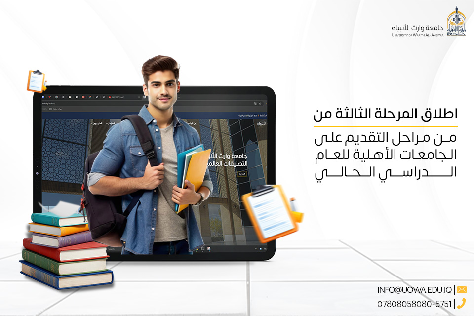 نسترعي انتباه طلبتنا الاعزاء وعوائلهم الكريمة بأن جامعة وارث الأنبياء (ع) مستمرة بالدوام واستقبال المراجعين في خيمة تسجيل الطلبة بشكل طبيعي، حتى لو تم إعلان عطلة رسمية يوم غد. فريق التسجيل متواجد لخدمتكم والإجابة عن جميع استفساراتكم، وتسهيل إجراءات التقديم للطلبة الجدد دون أي تأخير.