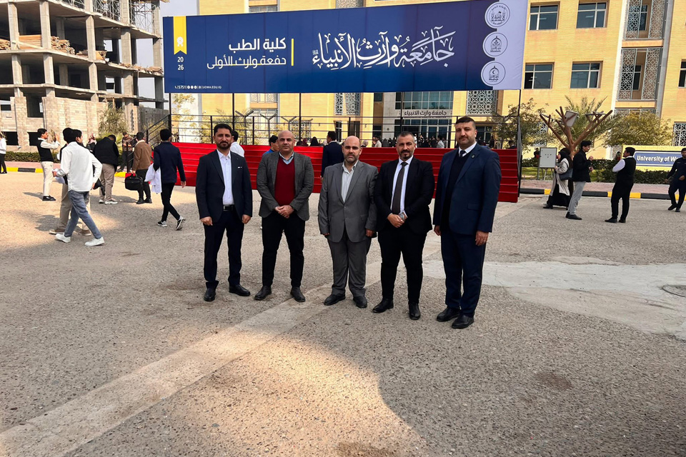 من جوار مرقد الإمام الحسين (عليه السلام)، احتفت جامعة وارث الأنبياء (ع) بتخريج الدفعة الأولى من طلبة كلية الطب، في مراسم مهيبة جسدت فرحة الإنجاز وروح الانتماء للقيم الإنسانية التي يمثلها نهج الإمام الحسين (ع).