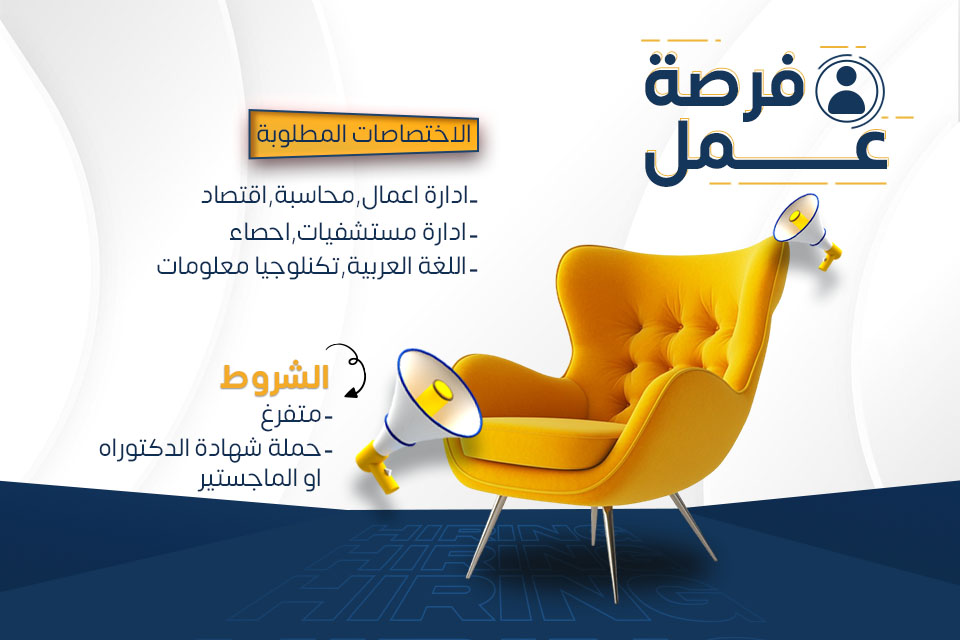 تعلن جامعة وارث الانبياء(عليه السلام) /كلية الإدارة والإقتصاد ، عن حاجتها إلى كوادر تخصصية من (غير المتعينين على ملاك حكومي أو أهلي)، ممن يحملون شهادة الدكتوراه، او الماجستير في التخصصات الآتية: