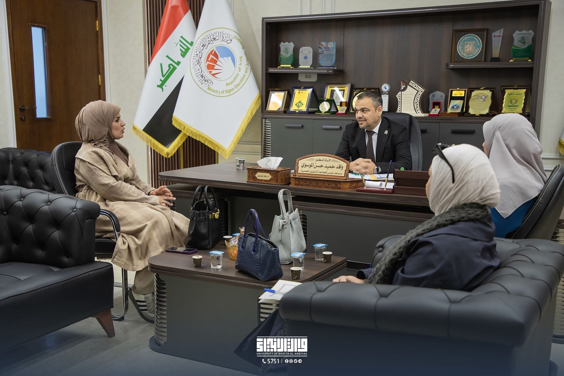 The Dean of the College of Science at the University of Warith Al-Anbiyaa received a delegation from the Biological Research Unit for Hot Regions at the University of Baghdad. The visit aimed to explore the university’s advanced scientific laboratories and gain insight into the nature of the research conducted there.
