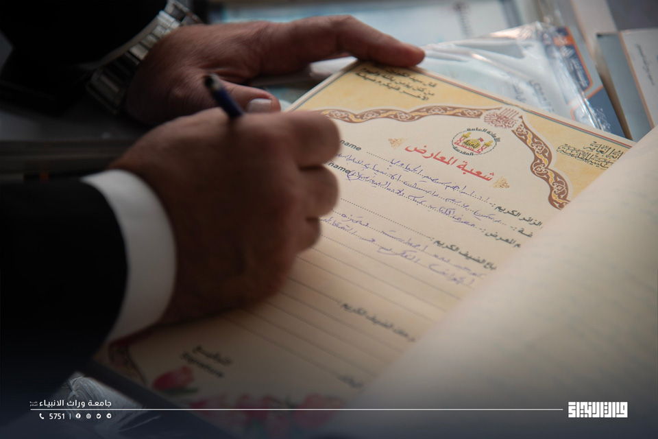 In commemoration of the birth anniversary of Lady Zainab al-Kubra (peace be upon her), Warith Al-Anbiyaa University (peace be upon him) hosted the exhibition “Al-Shajarah Al-Tayyibah lil-Kitab” organised by the Festival and Religious Events Department of the Holy Al-Hussain Shrine Secretariat, with the presence of the University President, Prof. Dr. Ibrahim Saeed Al-Hayyawi, along with faculty members and students.
