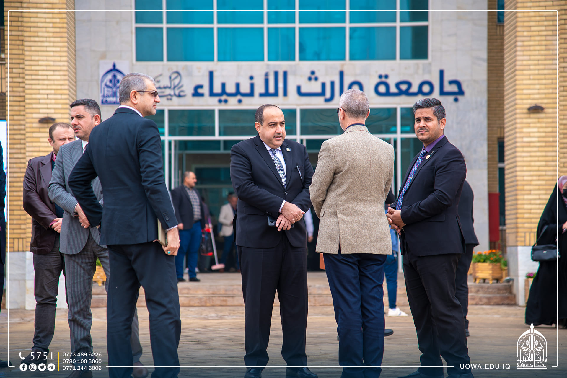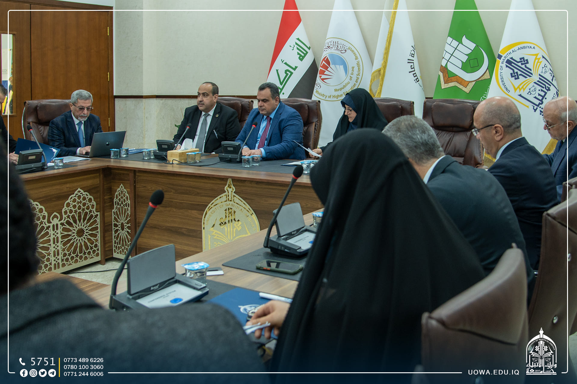 The first meeting of the heads of educational and health institutions at Alhussainia Holy Shrine was held on Wednesday Feb. 1st 2023 to discuss the possibility of cooperation in order to improve and achieve integration with the work of the institutions of Alhussainia Holy Shrine. The meeting was chaired by Dr. Sattar Al-Saadi, President of the Health and University Education Authority, and attended by the Presidency of Warith Al-anbiyaa University represented by Prof. Dr. Ibrahim Al-Hayawi, the university hosted the first meeting. This meeting came to enhance cooperation between institutions and discuss issues of practical training for university students in health institutions and the need to provide all the necessary requirements to make the outputs of these institutions keep up-to-date with global developments.