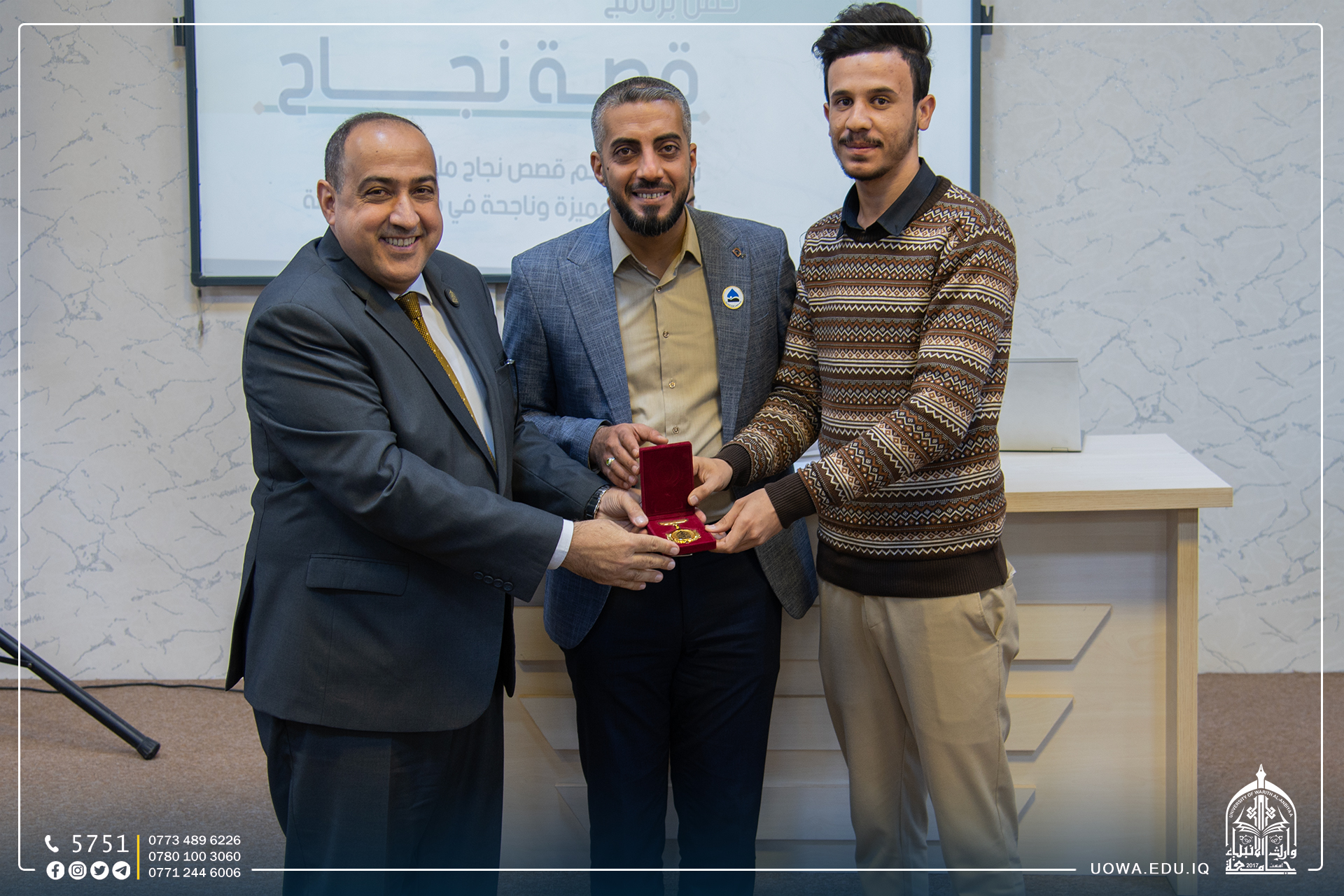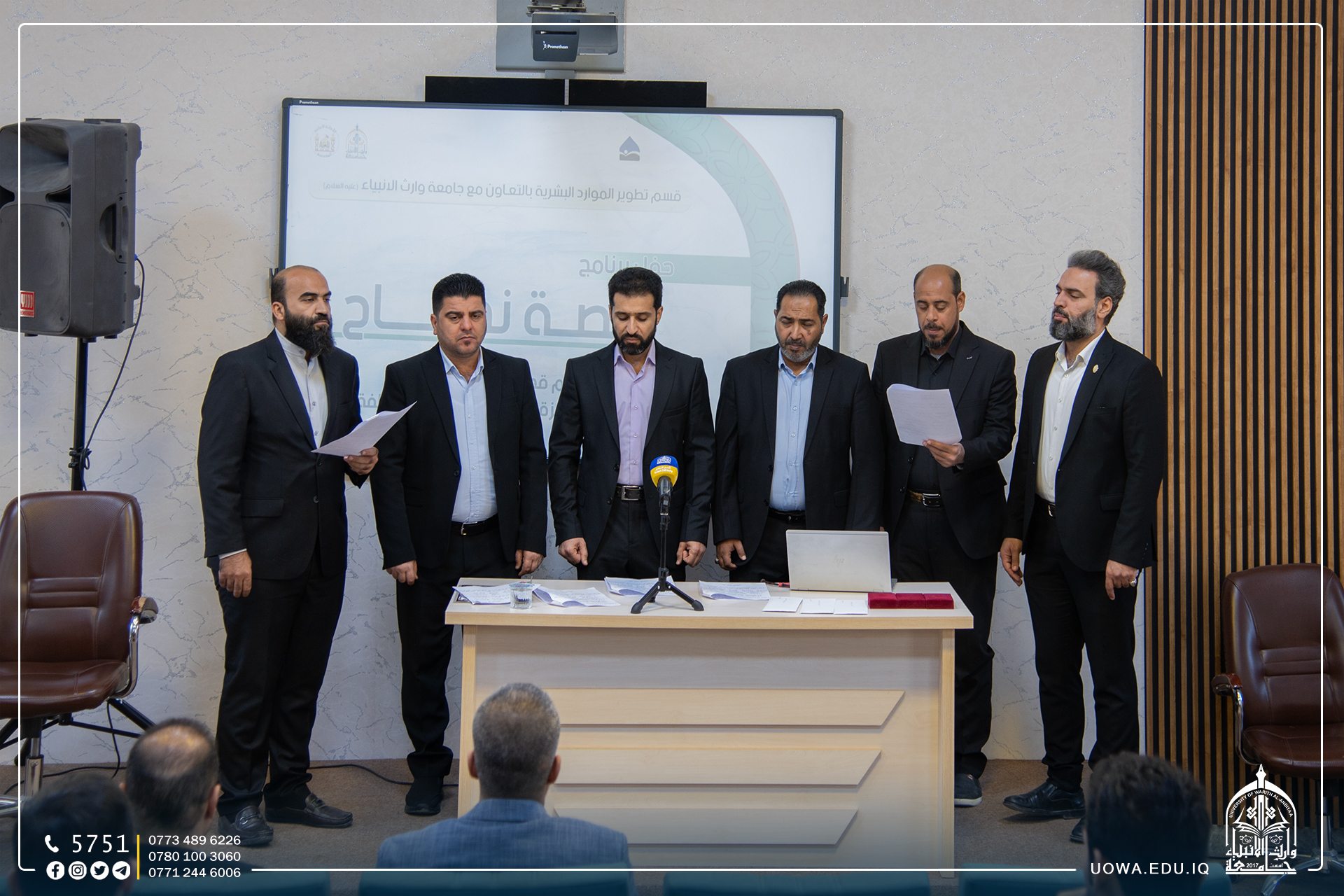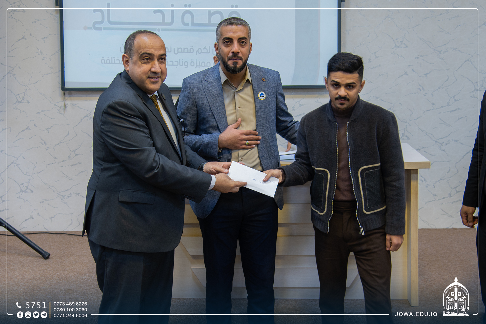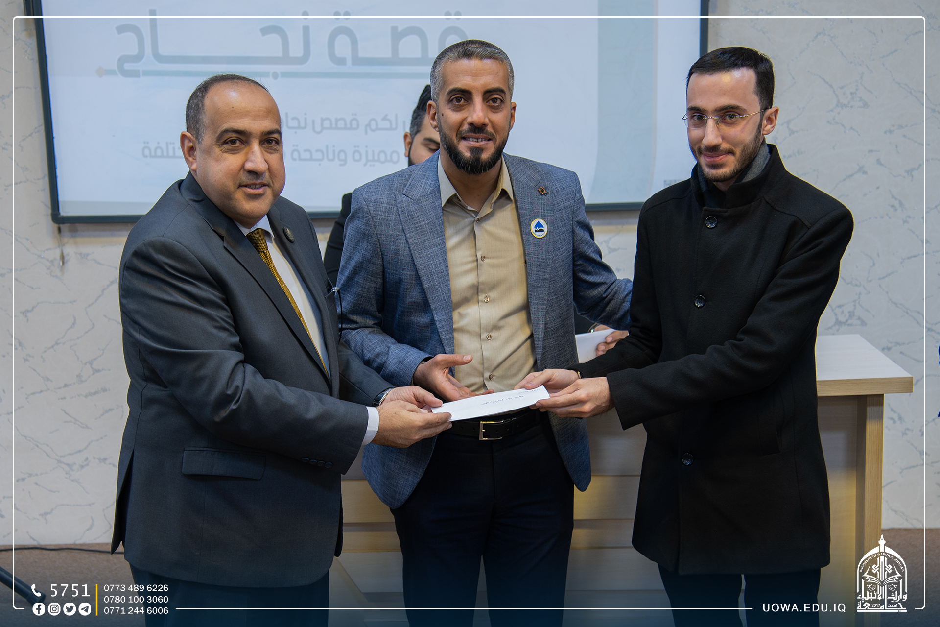 In the presence of Mr. Ibrahim Al-Hayawi, the President of the University, the Department of Student Activities at the University of Warith Al-Anbiyaa (peace be upon them) is organizing an event to honor the university students who have excelled in the "Success Story" program. The program was conducted in collaboration with the Youth Care Center in the Department of Human Resources Development at the Holy Shrine of Imam Hussain.
