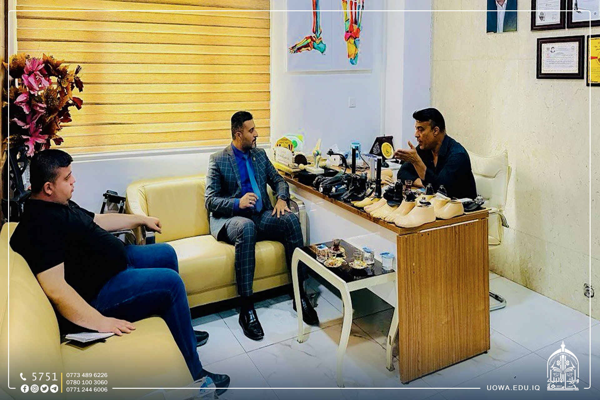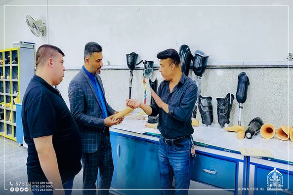 In preparation for qualifying and training students and graduates of the Biomedical Engineering Department and appointing them to the Warith Derman Center for Prosthetic Limbs of the Holy Shrine of Imam Hussein, the team of the Warith Center for Entrepreneurship, Innovation and Development visited the Warith Derman Center for Prosthetic Limbs and met with the Center’s assistant director, Engineer Haider Al-Qurain.