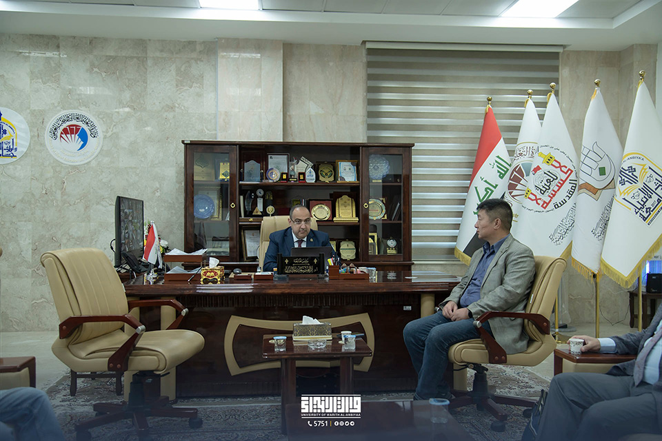 Within the framework of scientific and cultural communication between universities, a delegation from the Chinese University of Nanjing visited the University of Warith Al-Anbiyaa (PBUH). They were received by His Excellency the President of the University, Professor Dr. Ibrahim Saeed Al-Hayawi, Assistant President of the University for Scientific Affairs, Professor Dr. Waqed Al-Moussawi, in addition to a number of deans and heads of scientific and administrative departments.