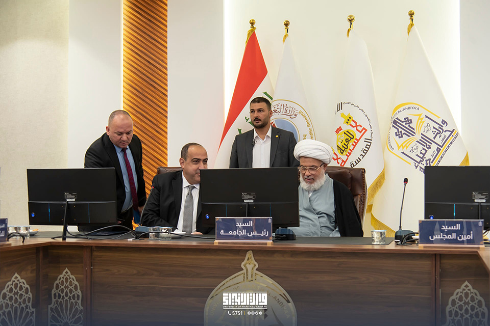 His Eminence Sheikh Abdul Mahdi Al-Karbalai stressed the importance of paying attention to the scientific aspect and using all available capabilities for that, as well as attracting both Iraqi and international competencies and expertise to teach at the university, support scientific research, and encourage researchers in this area with the aim of reflecting a positive image on the quality of scientific outputs. The visit was intended to discuss ways to develop the educational process, from the scientific, academic, and administrative aspects, in an effort to achieve the desired goals of advancing and distinguishing the educational mission. His Eminence emphasised the significance of considering psychological and educational counsel, pointing out that it is just as vital as the scientific part.