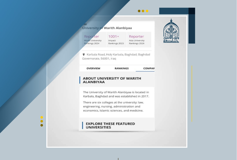 In an ongoing effort to stay abreast of scientific advancements, the University of Warith Al-Anbiyaa (PBUH) has distinguished itself by earning a spot in the international classification of the British Times Foundation for 2024.