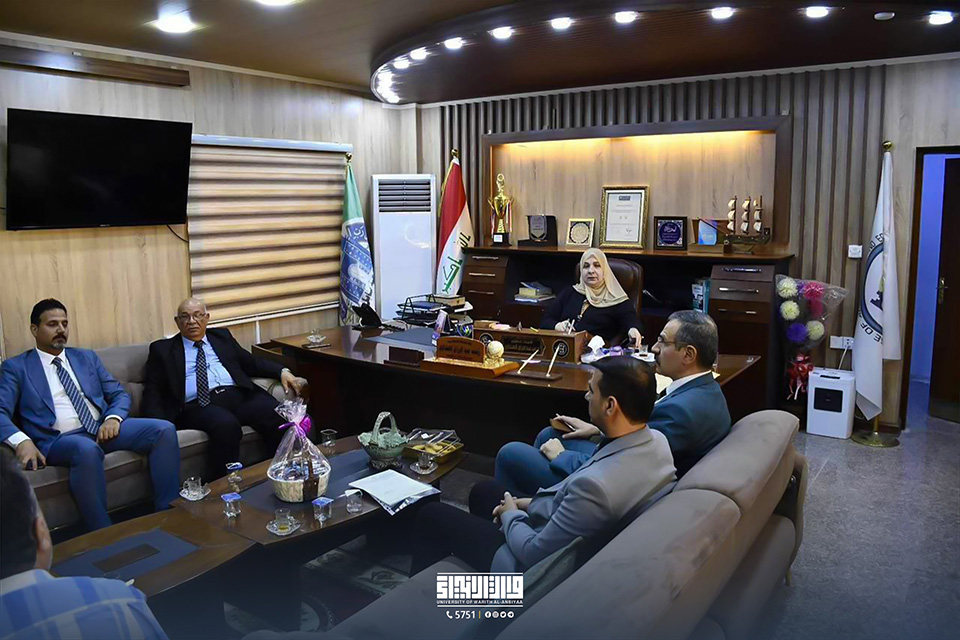 Professor Dr. Zainab Al-Hindawi, the dean of the College of Administration and Economics at the University of Babylon, welcomed a delegation from the Deanship of the College of Administration and Economics at the University of Warith Al-Anbiyaa (PBUH), which was led by Professor Dr. Awad Al-Khalidi, the dean of the College.