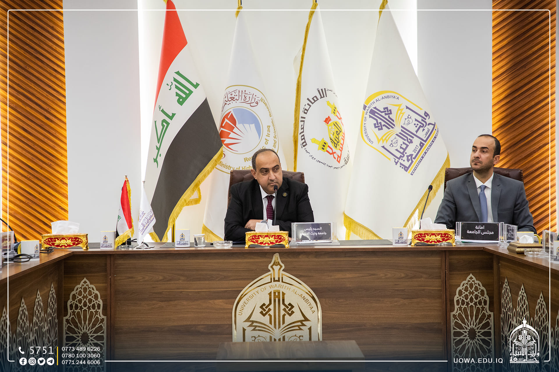 The University of Warith Al-Anbiyaa (peace be upon them) held its regular council session under the presidency of Professor Dr. Ibrahim Al-Hayawi. The meeting was attended by the vice presidents of the university for administrative and academic affairs, as well as the deans of the colleges.