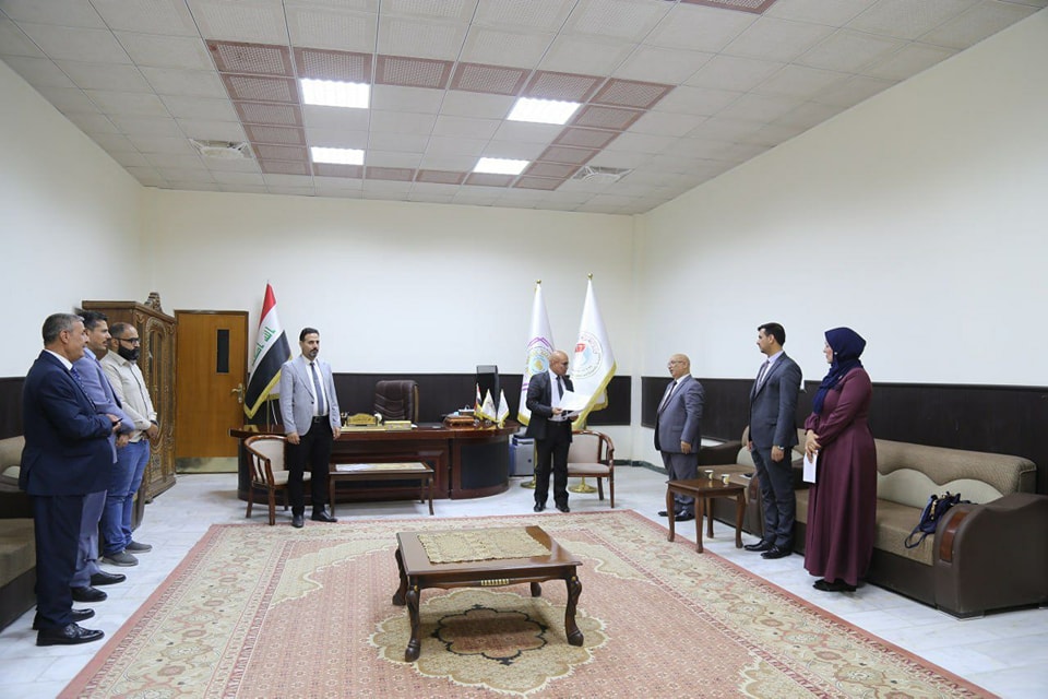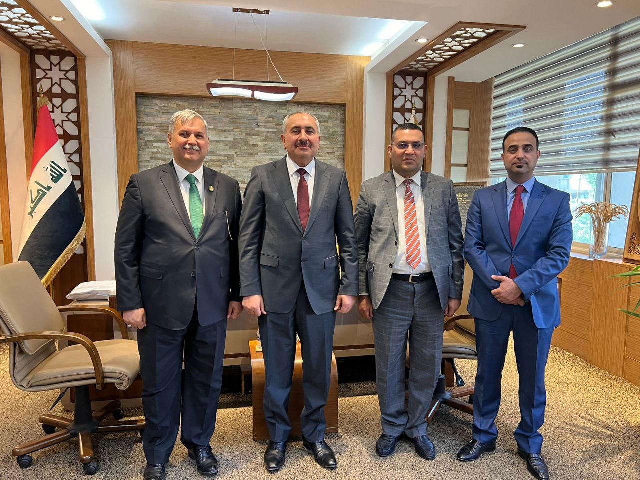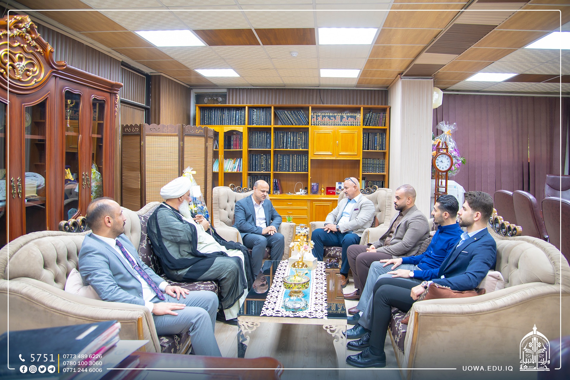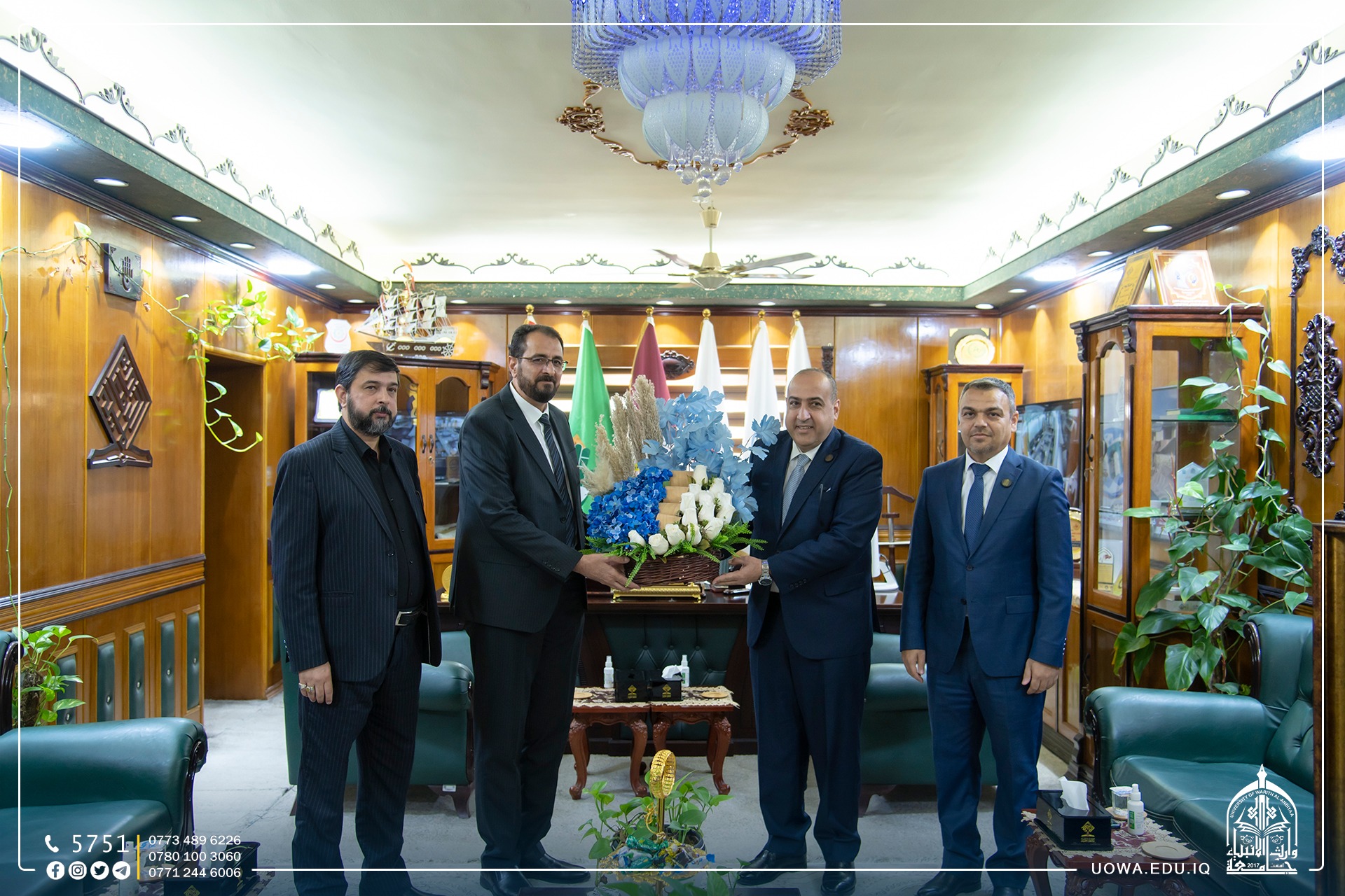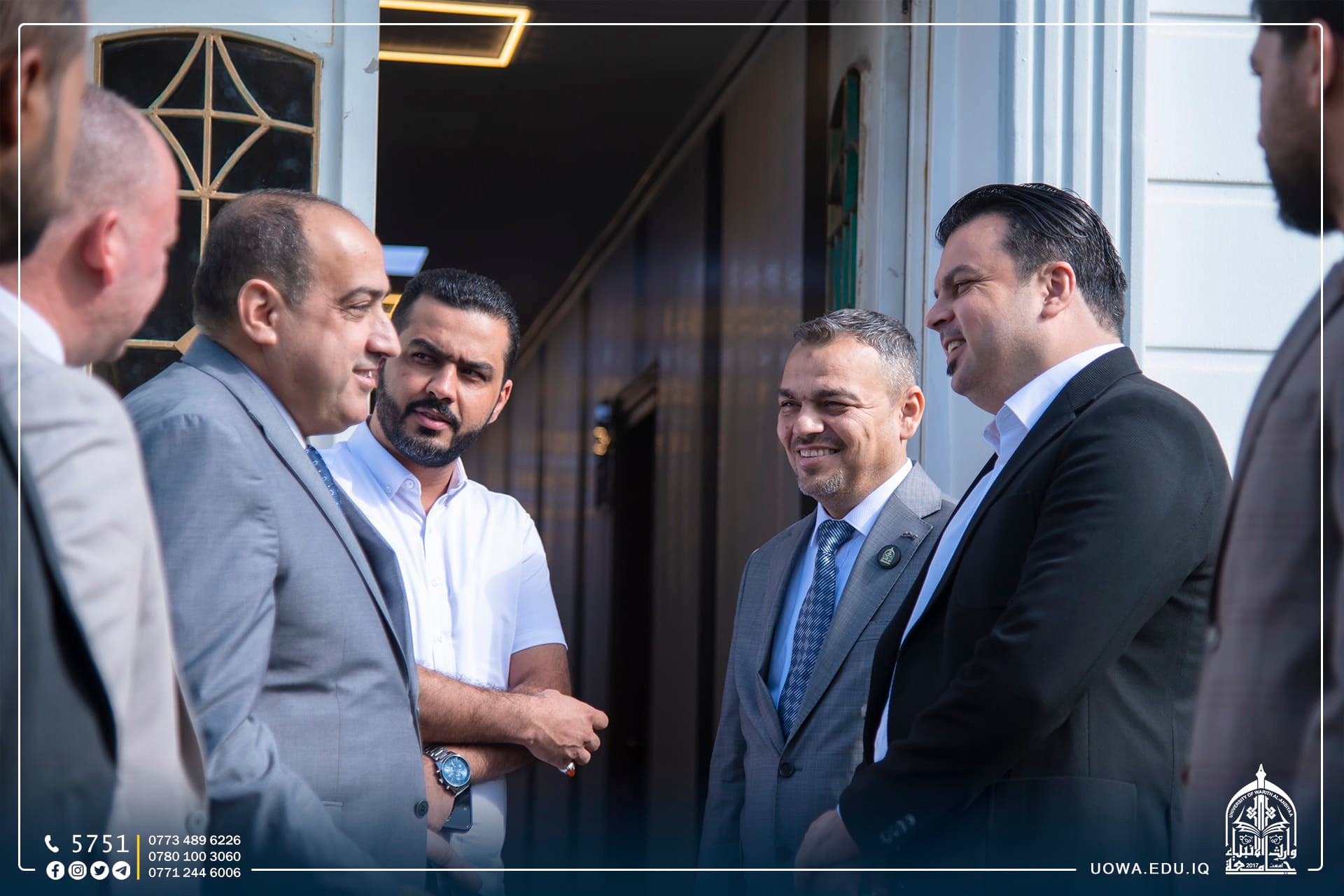The President of the University, Dr. Ibrahim Al-Hayawi, received Dr. Basim Khalil Al-Saadi, the President of the University of Karbala, along with Dr. Akram Al-Yasiri, the Administrative Assistant. They visited the university to offer their congratulations to Dr. Hussein Hadi Hussein, Assistant Professor, on the occasion of his assumption of the deanship of the College of Engineering. They pray for his success in serving the scientific journey in our beloved country.
