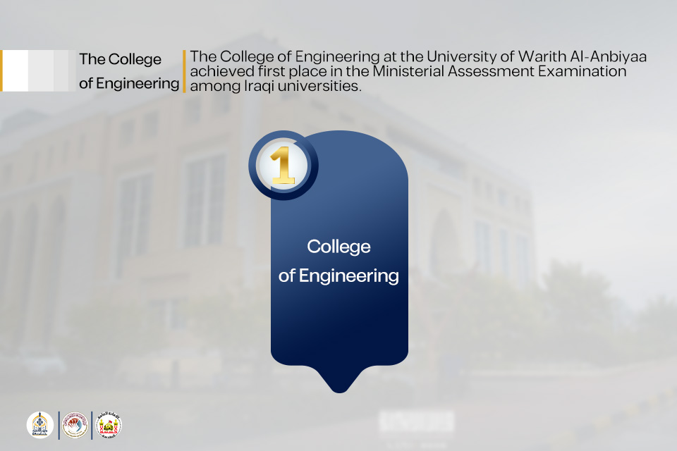 The College of Engineering at the University of Warith Al-Anbiyaa has achieved a distinguished academic milestone by securing first place nationwide in the Ministerial Assessment Examination, according to the official results issued by the Ministry of Higher Education and Scientific Research. This accomplishment reflects the high quality of the College’s educational outcomes and the excellence of its academic performance.