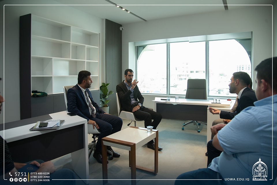 A delegation from the University of Warith Al-Anbiyaa recently paid a visit to the University of Technology with the aim of fostering collaborative efforts and exploring opportunities for joint cooperation in the scientific and research domains. Through visual documentation, the pictures capture the fruitful discussions held between the two universities' representatives. The visit sought to establish mechanisms for active cooperation, enabling students to engage in shared scientific and research endeavors.